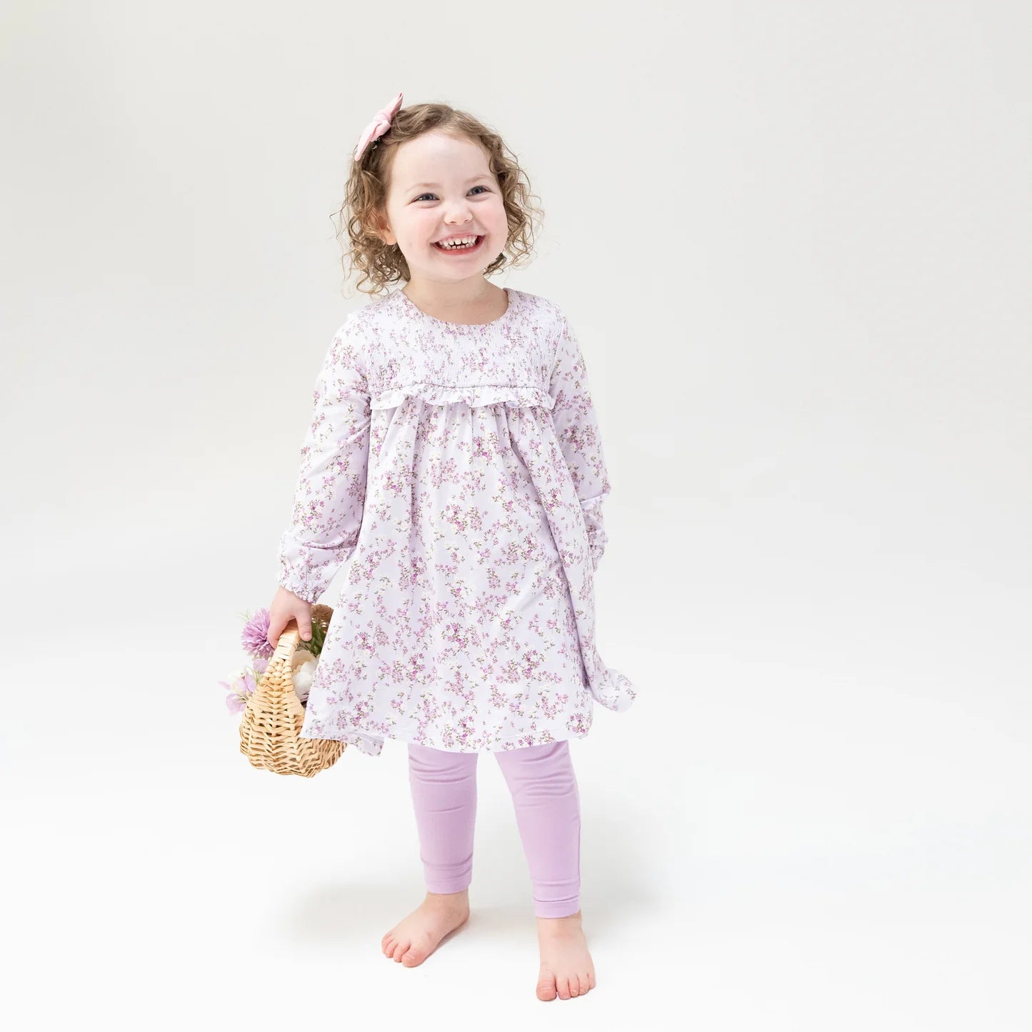 Get ready for compliments! Our Smocked Ruffle Long Sleeve Tiered Dress + Leggings Set is made from buttery-soft viscose from bamboo, combining all-day comfort with twirl-worthy style. The dress features sweet smocking at the chest, gentle ruffle details, and a tiered skirt that’s perfect for spinning through fall days. Paired with matching leggings for extra warmth and easy movement, this outfit is as comfy as it is cute.