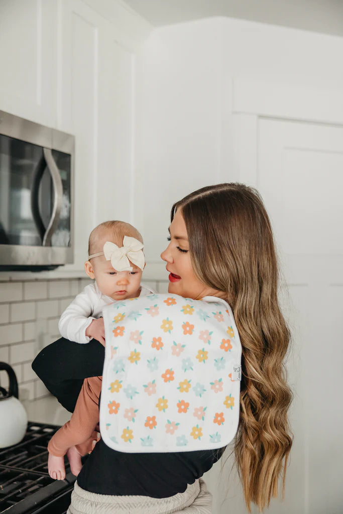 Our burp cloths come in a generous 21x10 inch size, providing greater shoulder coverage (and less outfit changes) for Mom and Dad.