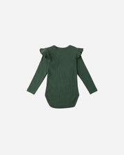 Green Shoulder Ruffle Bodysuit