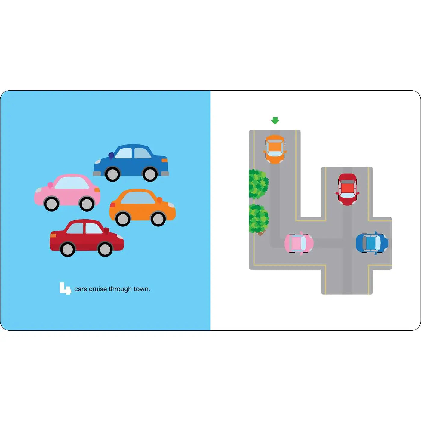 Kids will learn to count and write numbers in this fun, colorful, and interactive hands-on novelty book from the talented Chiêu Anh Urban! Stylistic in design, this colorful and interactive counting book invites youngest readers to zoom on trains, submarines, spaceships, and a variety of things that go! Each spread with cut-out layers and glossy paths features a different mode of transportation for a hands-on exploration of numbers and vehicles. Count, touch, and trace from one to ten, whether it’s one plane on the runway, two dump trucks on the construction site, or ten bicycles on a bike path. Then fly, sail, race, and count backwards through clouds, ocean, and land to find hidden surprises. 123 ZOOM is a playful format with die-cut numbers and glossy paths for exploring various vehicles, while providing fun learning of basic numbers and writing concepts.
