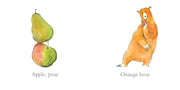 Destined to become a contemporary classic, this book has spare text and sweet illustrations but contains only five words: apple, pear, orange, bear--and there. Emily Gravett creates clever variations on this theme by rearranging the words--on one spread, a brown bear juggles an orange, apple, and pear; on another spread, there is an orange-colored apple and a pear-shaped bear. Simple and compelling, children will enjoy reading this book over and over again as they learn many different concepts.