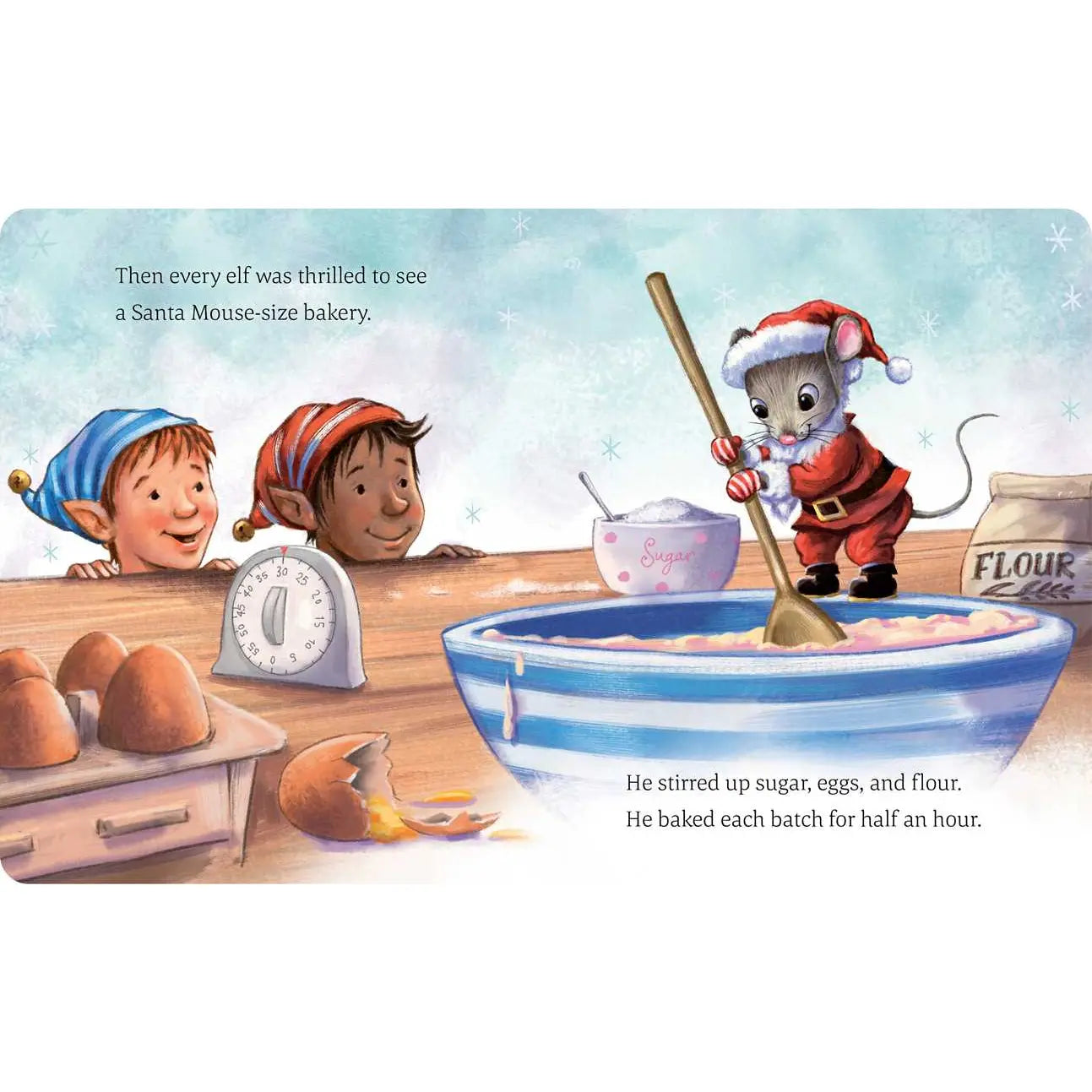 Santa Mouse becomes Santa's littlest helper…in the kitchen! Join Santa Mouse and the elves at the North Pole as they bake Christmas cookies in a sweet holiday tale. When Santa Mouse wakes to the delicious aroma of cookies on Christmas Eve, he finds the elves busy baking for Santa's big day. Always ready to lend a helping paw, Santa Mouse joins in to bake and decorate a surprising plate of cookies for everyone at the North Pole, including Santa's hardworking reindeer. This stocking stuffer–sized board book with a padded cover is the perfect celebration of the classic Christmas cookie tradition.