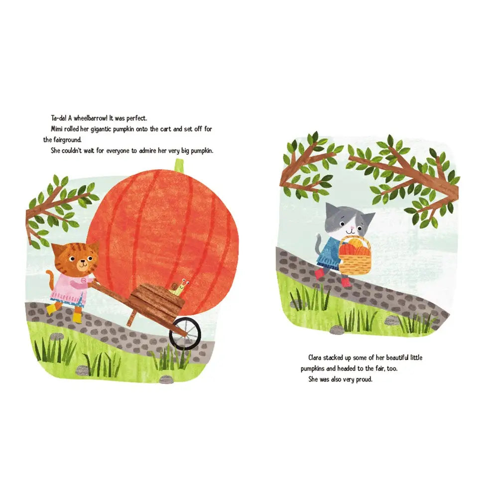 Mimi and Clara are neighbors. Both cats want to win this fall’s Great Pumpkin Contest. As the competition draws near, Mimi’s pumpkin grows larger . . . and larger . . . and LARGER. And soon the pumpkin—and her worries—are bigger than she imagined. Can Clara help Mimi find her way?