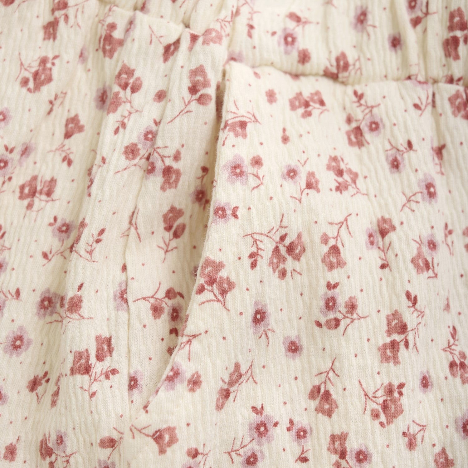 Nice all-over print trousers from Creamie. The trousers have elastic at the waist and pockets on each side.
