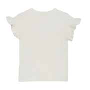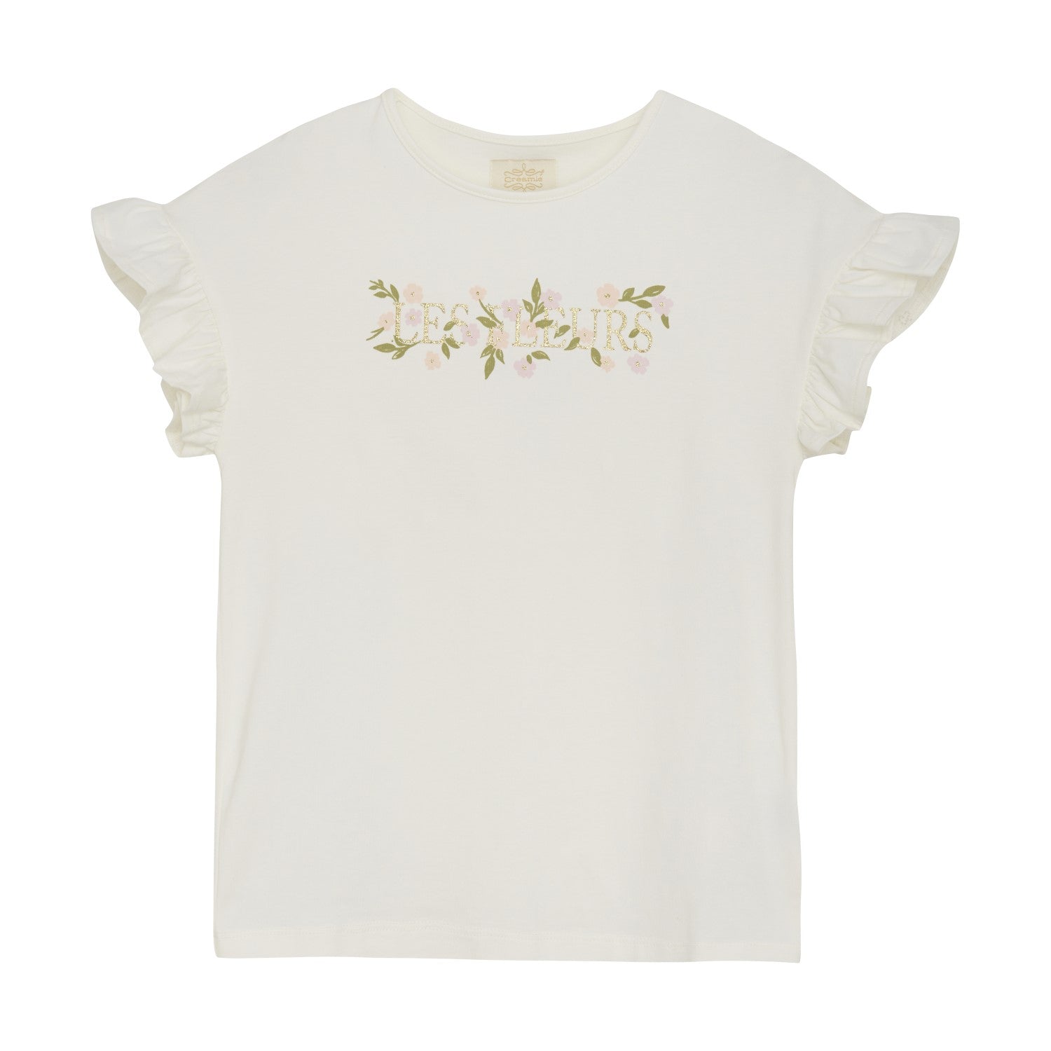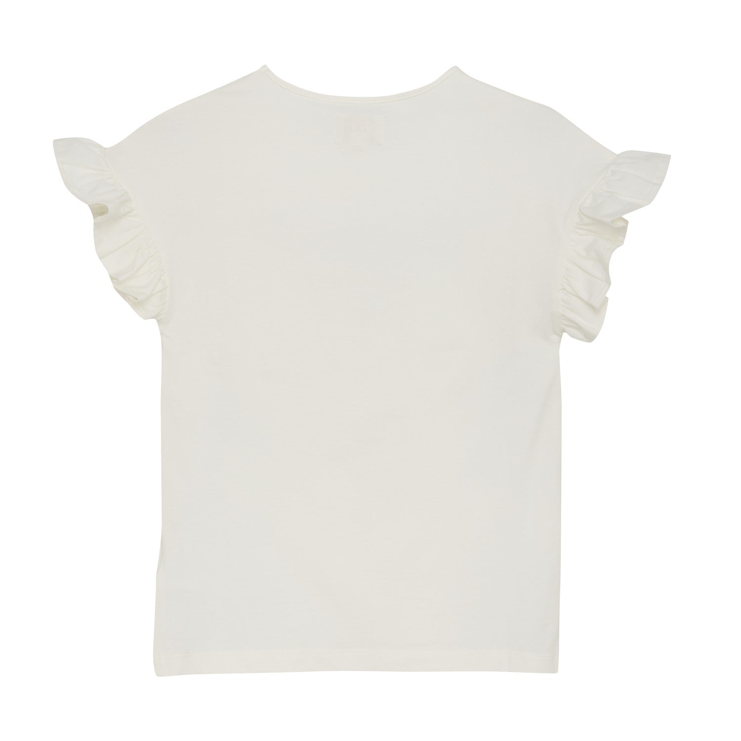 Simple t-shirt with round neck from Creamie. The T-shirt has drop shoulders with frills and a print on the front.