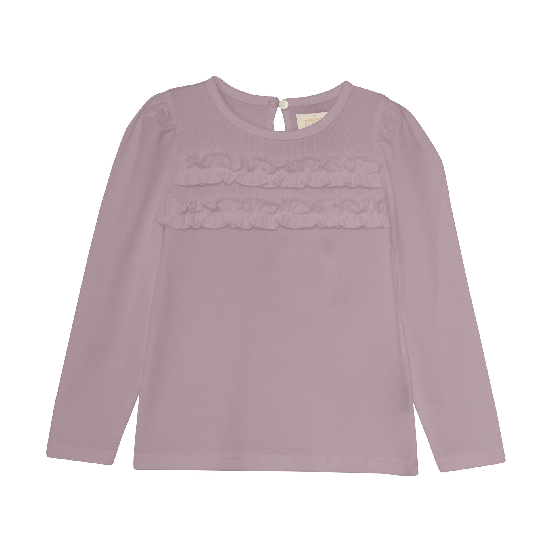 Long sleeve tee with lace detailing across the chest. Perfect to pair with a floral or glitter skirt! Add some tights for the colder months.