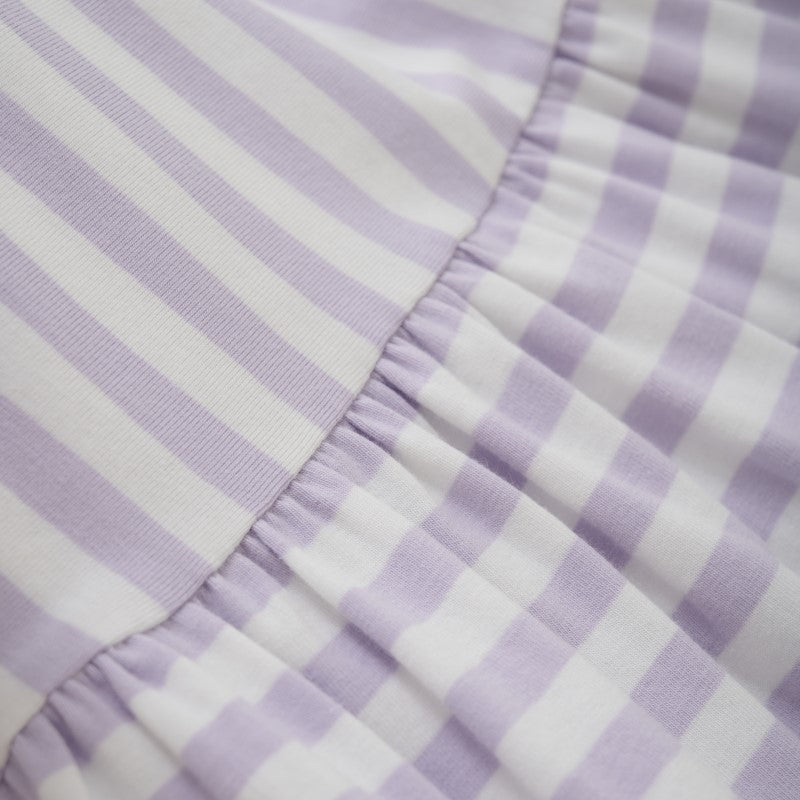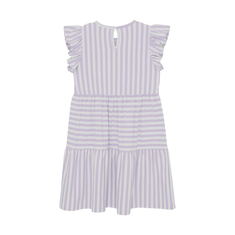 A classic tiered dress with fun striped in a fun pastel orchid. Perfect for an everyday dress!