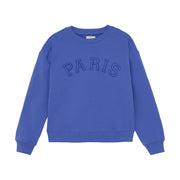 Royal blue crewneck sweatshirt with puff embroidery. Complete the outfit with the matching sweatshorts!