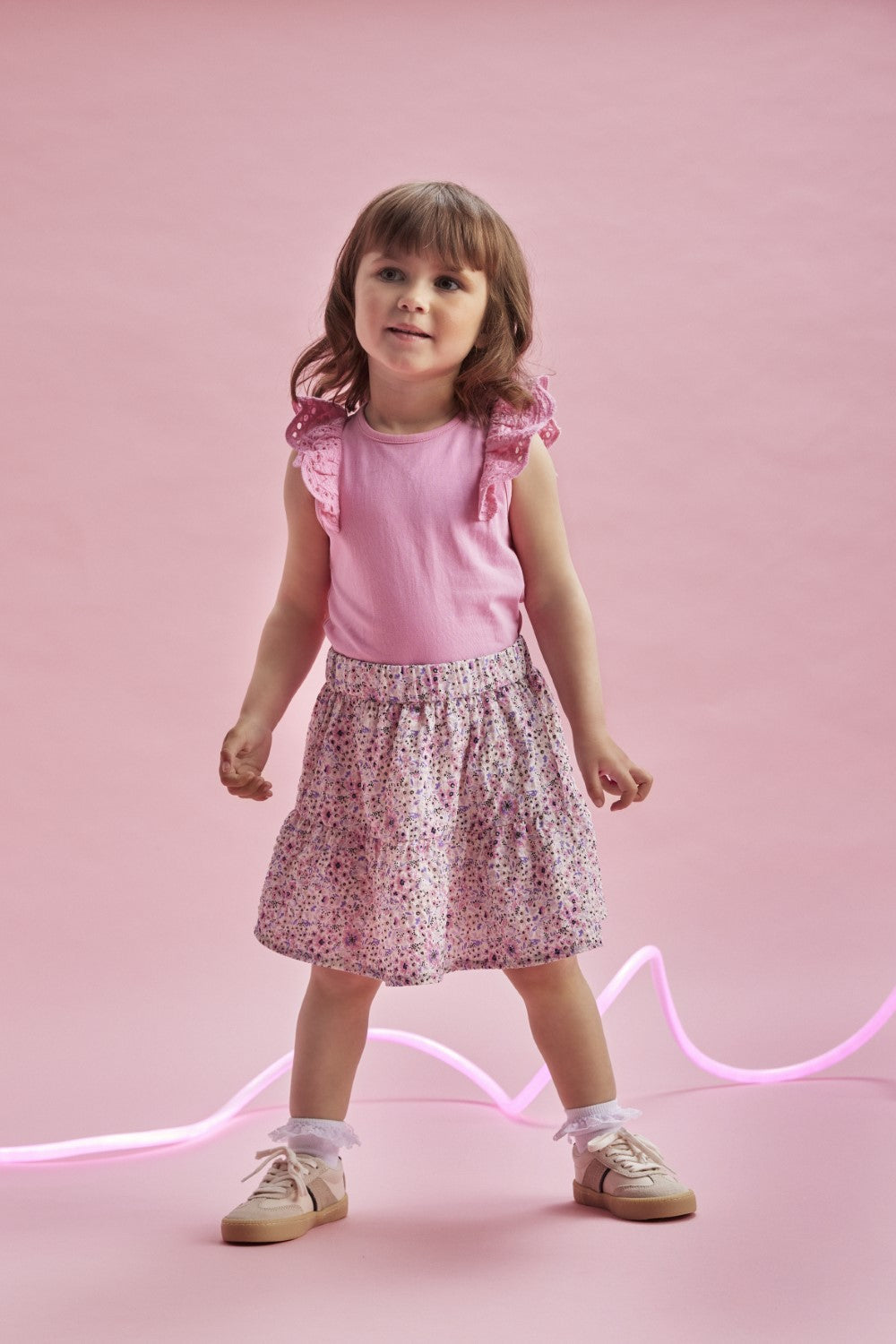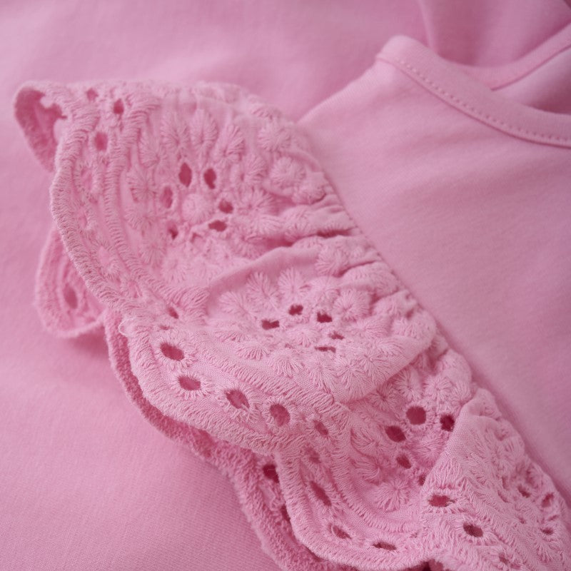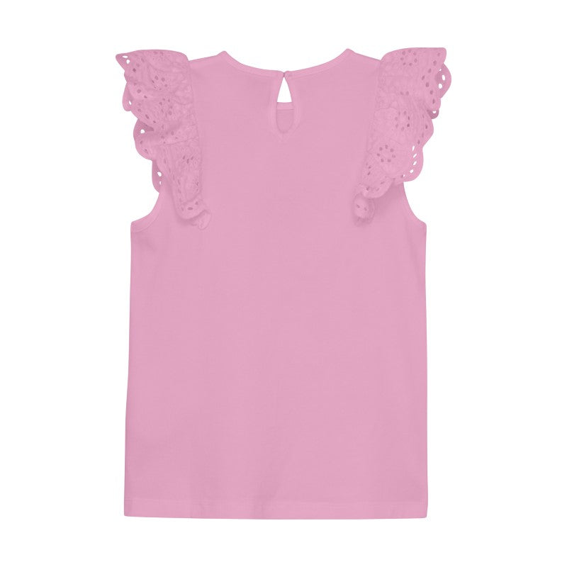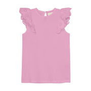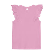 Classic tank with lace details on the sleeve in a delightful pink. Pair with denim shorts or a fun skirt to elevate the outfit!