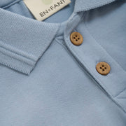 En Fant traditional polo style tee in dusty blue. This polo is the perfect color for spring and Easter. Add some khaki shorts to complete the look.