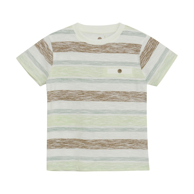 Watercolor striped tee with greens and browns. The perfect tee for everyday, pair with khakis for a dressier look.