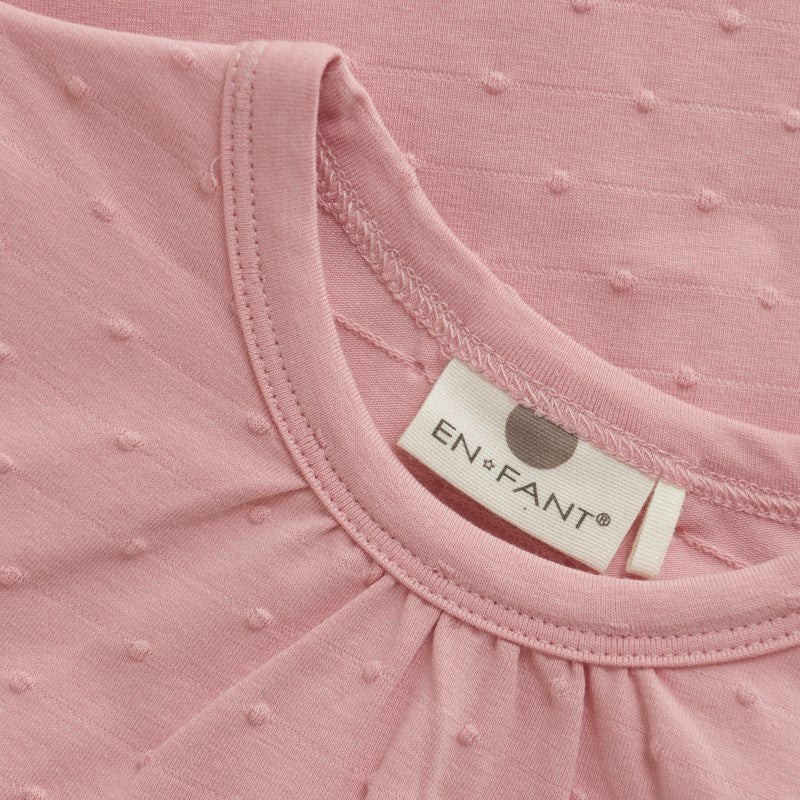 Short Sleeve polka-dot textured rose tee with puff sleeves. The perfect tee to pair with shorts or a fun skirt!