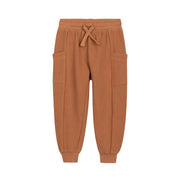 These stylish joggers have a grown-up style with cargo pockets on both sides. Made from an organically grown cotton ottoman, the joggers are a little thicker to keep them warm during the colder months. With a crease down the middle of each leg, the joggers have a boxy style and are finished with ribbed ankles for a comfortable fit. The waistband is elasticated and has a drawstring tie, ensuring they can be adjusted for comfort throughout the day. They’re easy to pull up and down for quick dressing or for swapping into pjs after a chilly day.