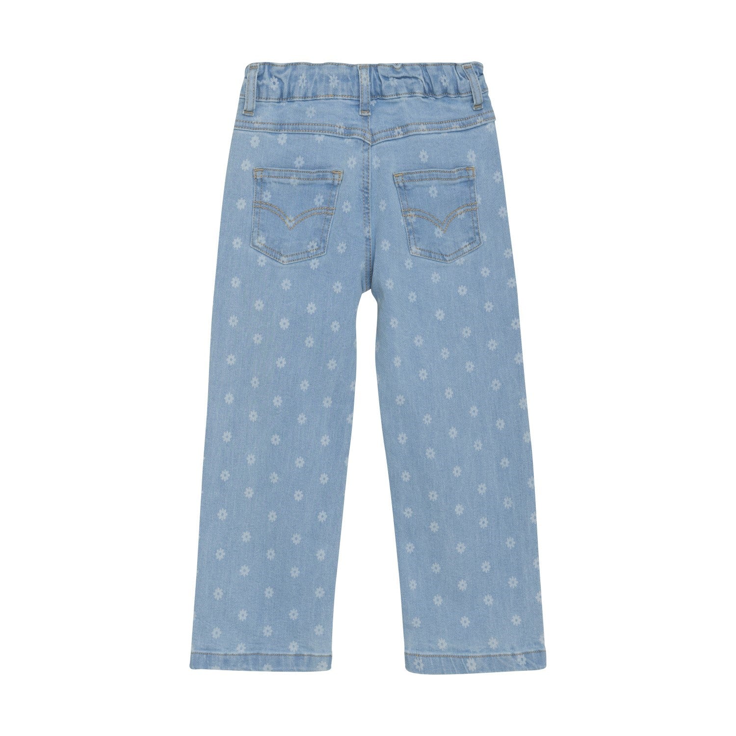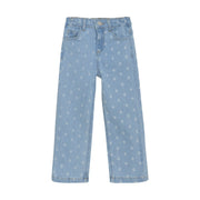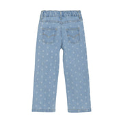 Straight cut denim with a subtle daisy print. Perfect to pair with your favorite sweater.