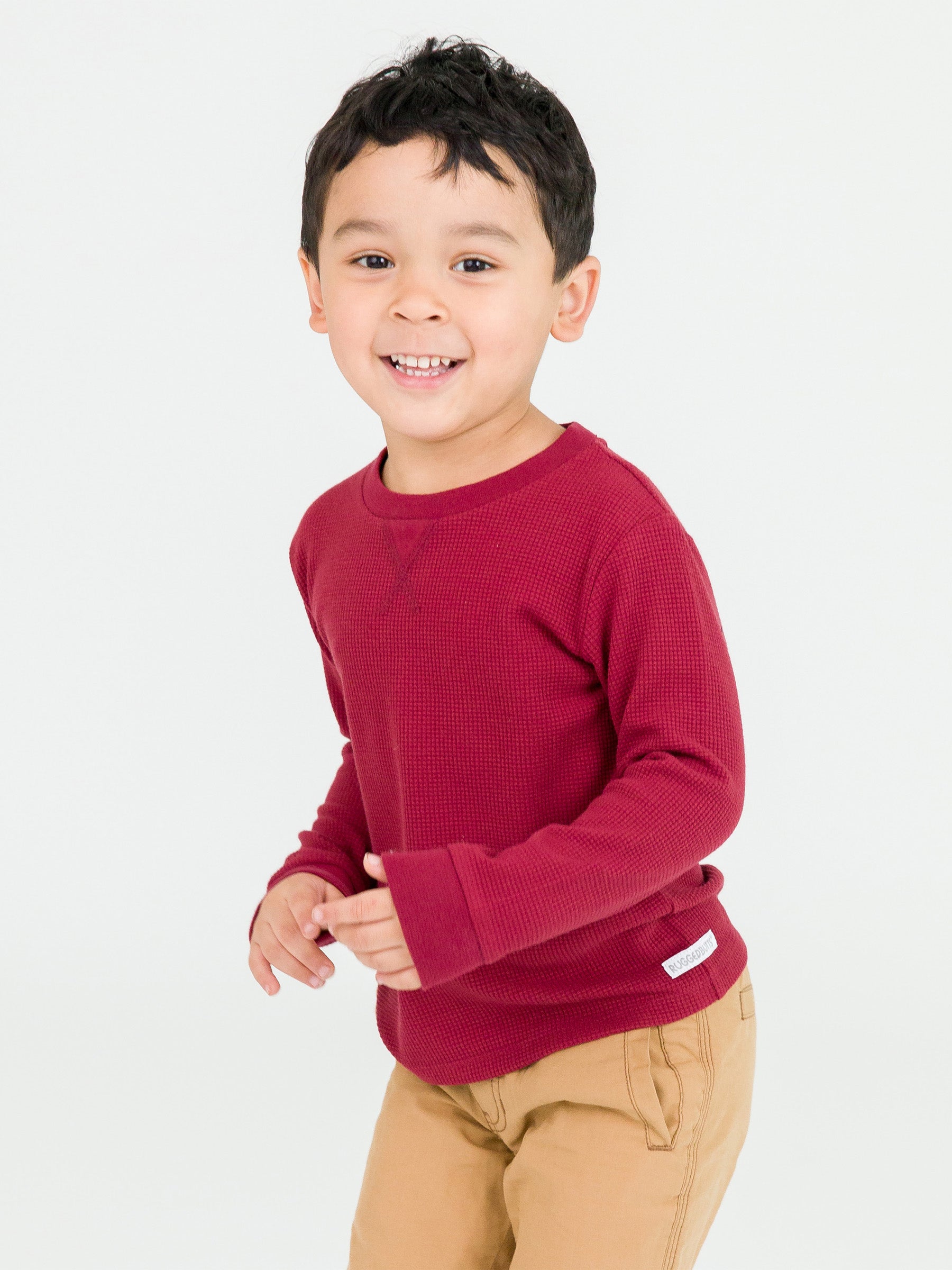 This waffle knit shirt is a cozy and stylish essential for the cooler seasons. Made from waffle knit fabric, this shirt provides warmth without compromising comfort. Its classic crew neck design and long sleeves make it a versatile option for layering or wearing on its own, ensuring your little one stays both comfortable and fashionable.