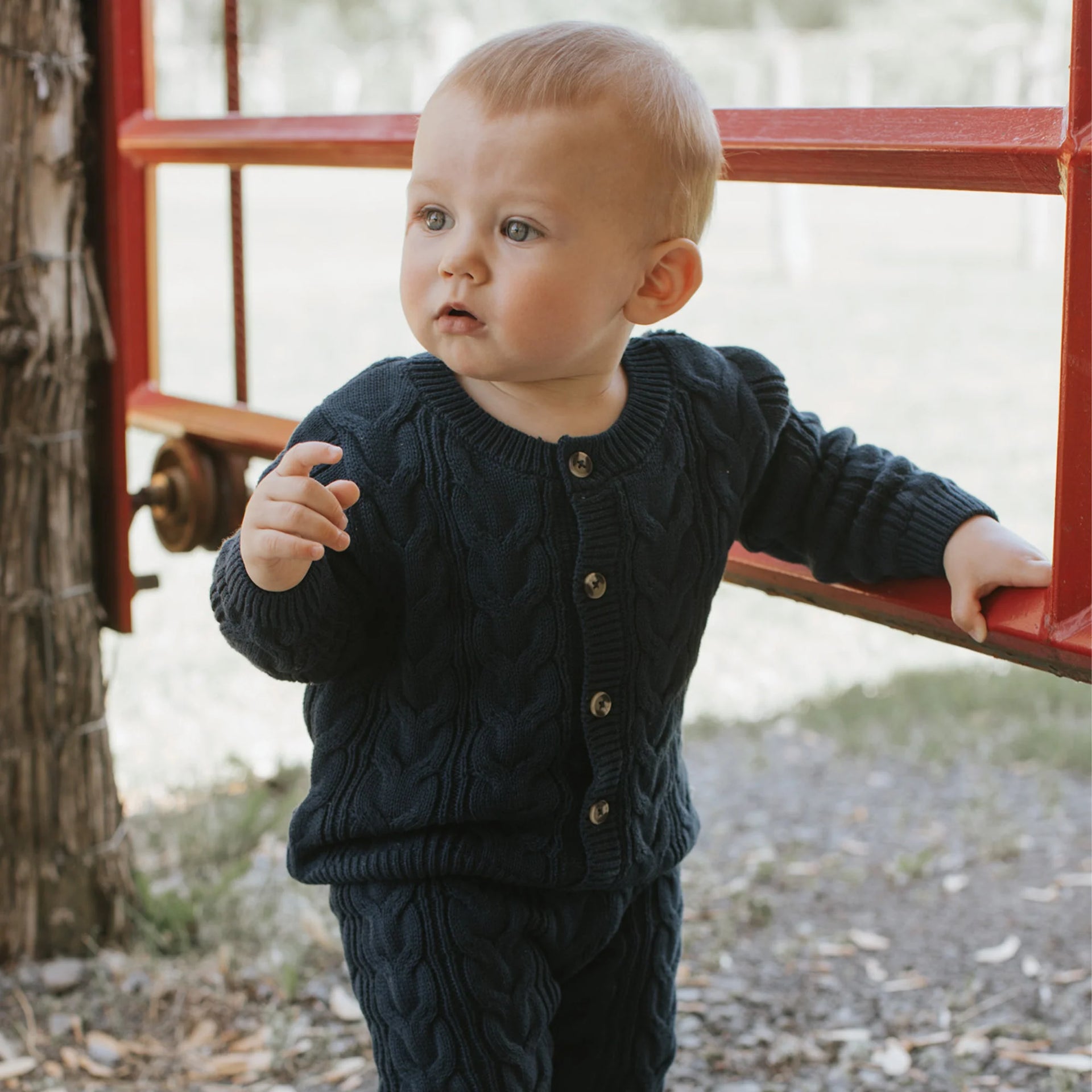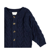 Perfect for layering over a t-shirt and matching pants from the same range, this sweater knit cardigan is a classic wardrobe staple. Timeless in design, the cozy piece can be passed down through generations, looking totally adorable on girls or boys. Made from organic cotton, the cardigan is super soft and un-scratchy.