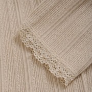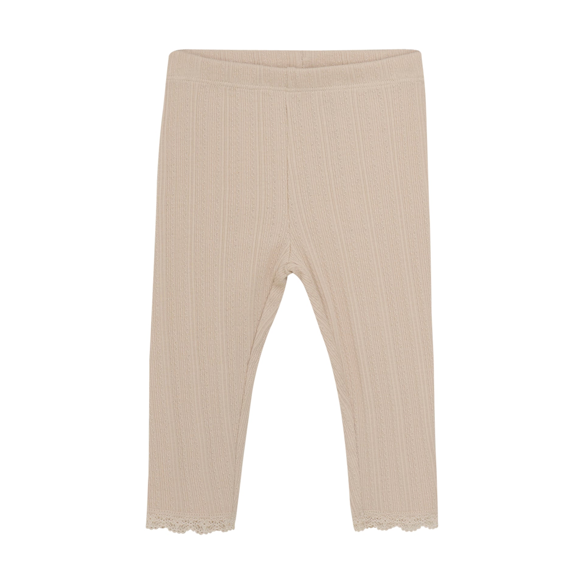 Tan pointelle leggings with lace detailing at the bottom hem. These leggings pair with so many prints and colors.