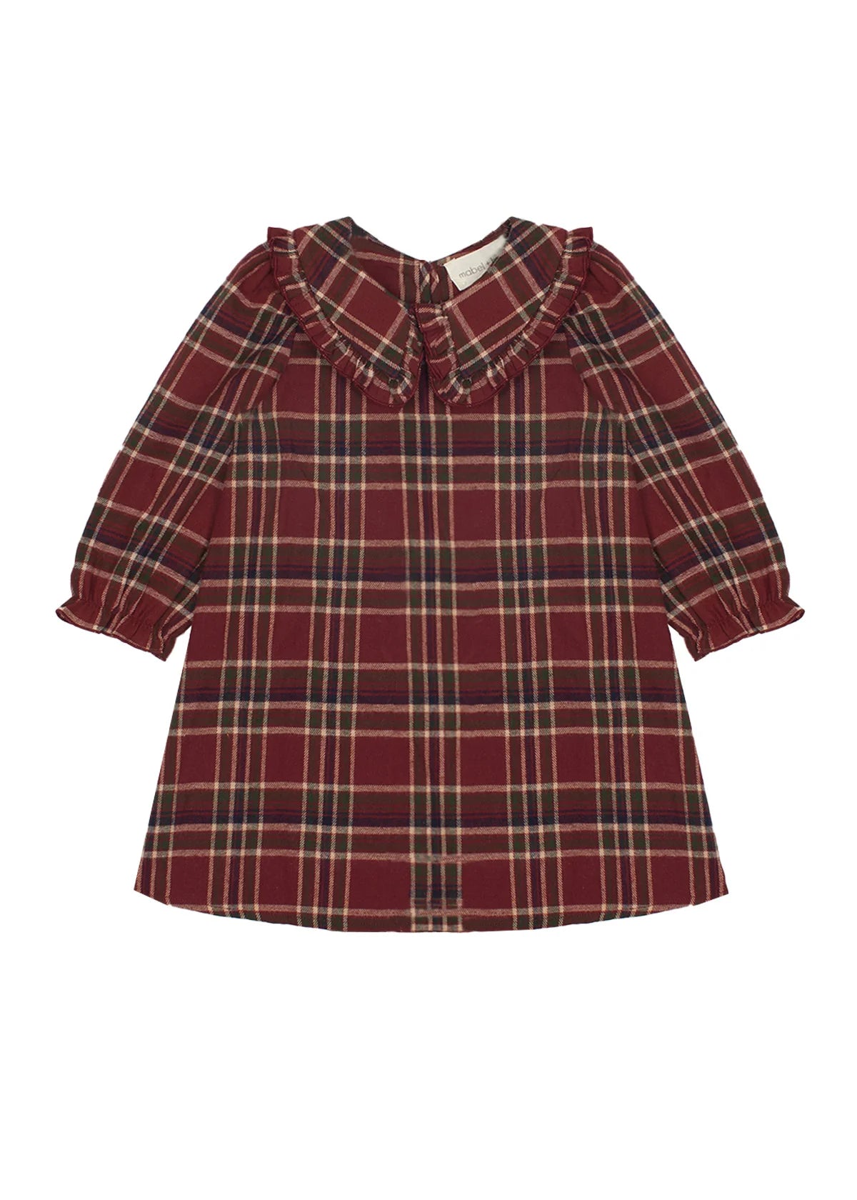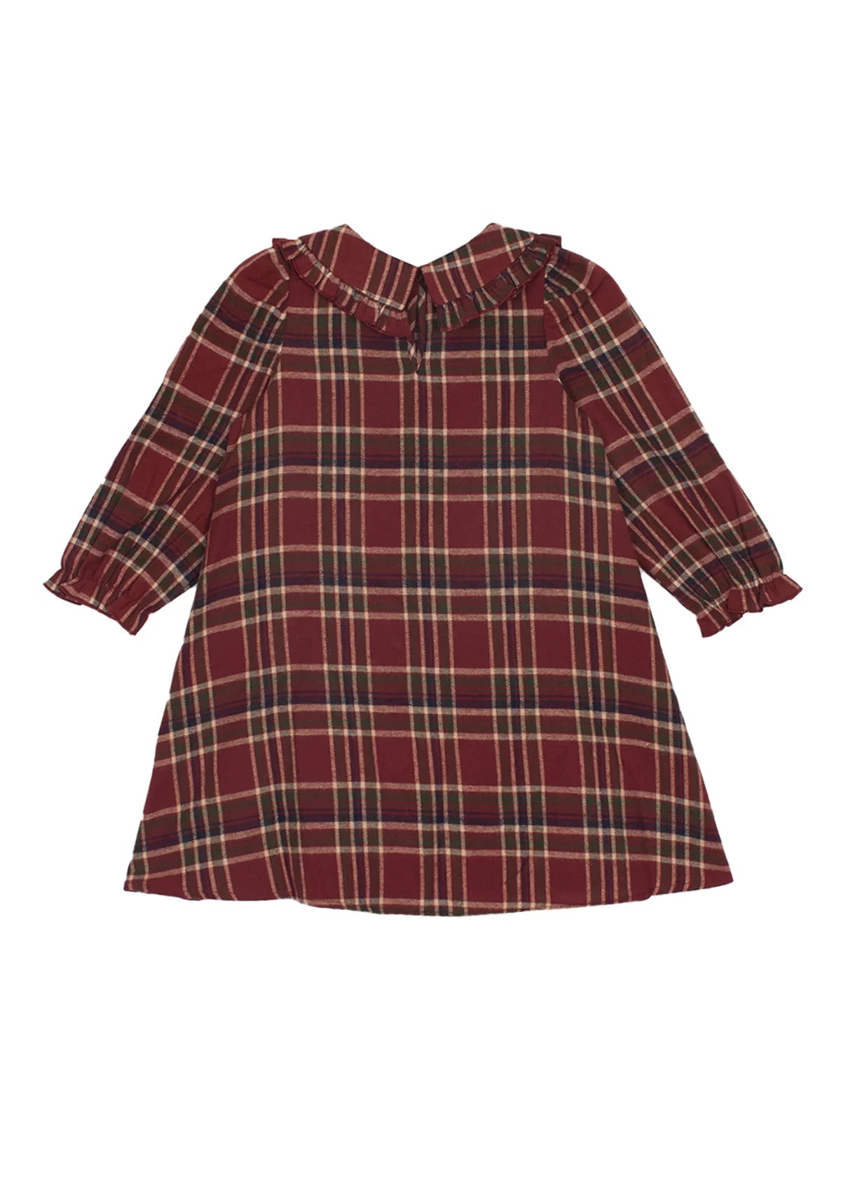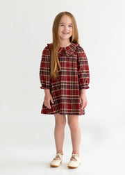 Embrace the warmth and style of the season with the Grace Dress, designed to charm with its classic plaid pattern and sweet ruffle collar detail. This lovely dress features long sleeves and a keyhole opening,