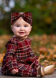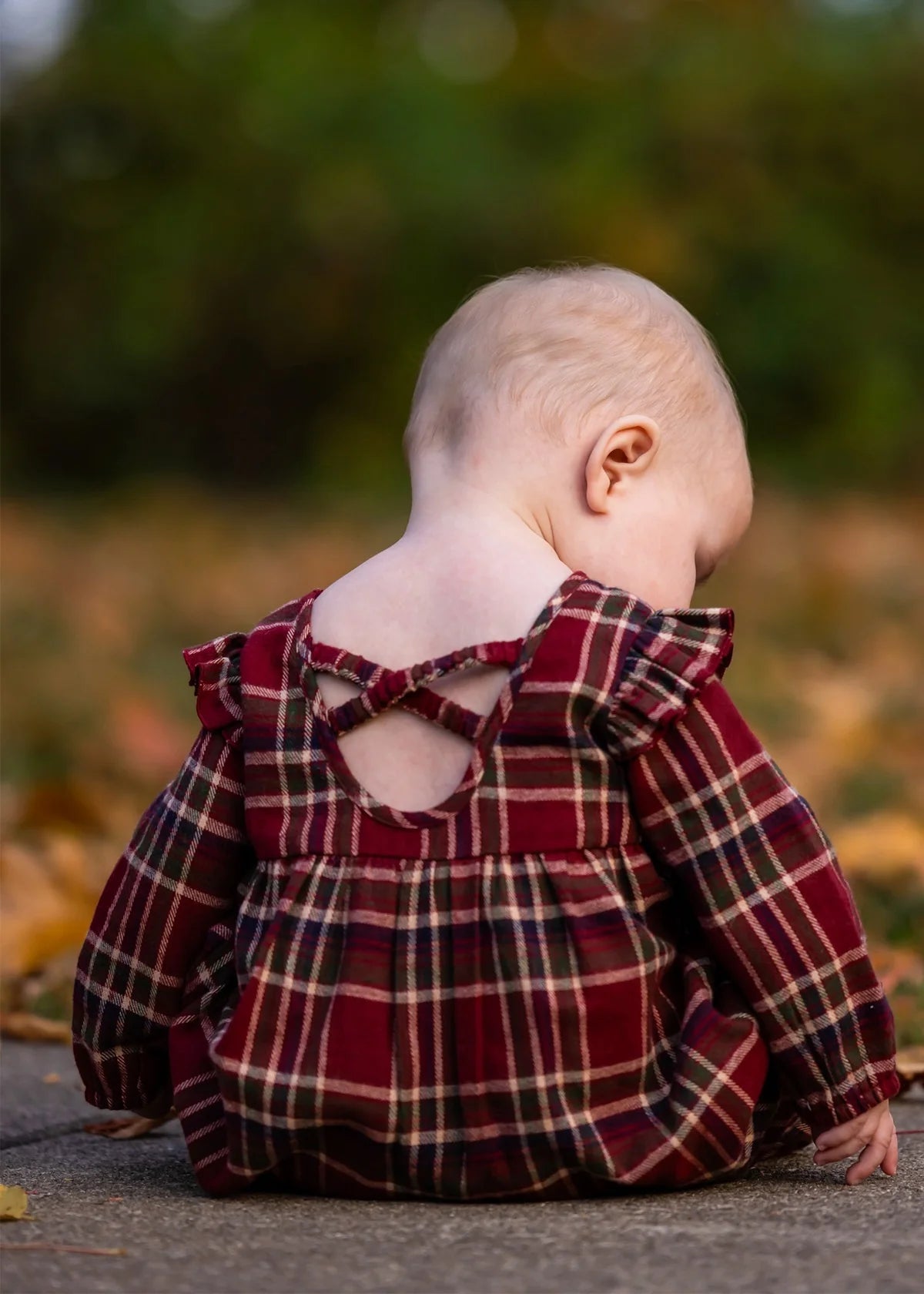 Embrace the cozy charm of the season with the Grace Romper, beautifully designed with a classic plaid pattern and delightful ruffle shoulder details. This stylish one-piece ensures your little one stays comfortable and fashionable.