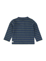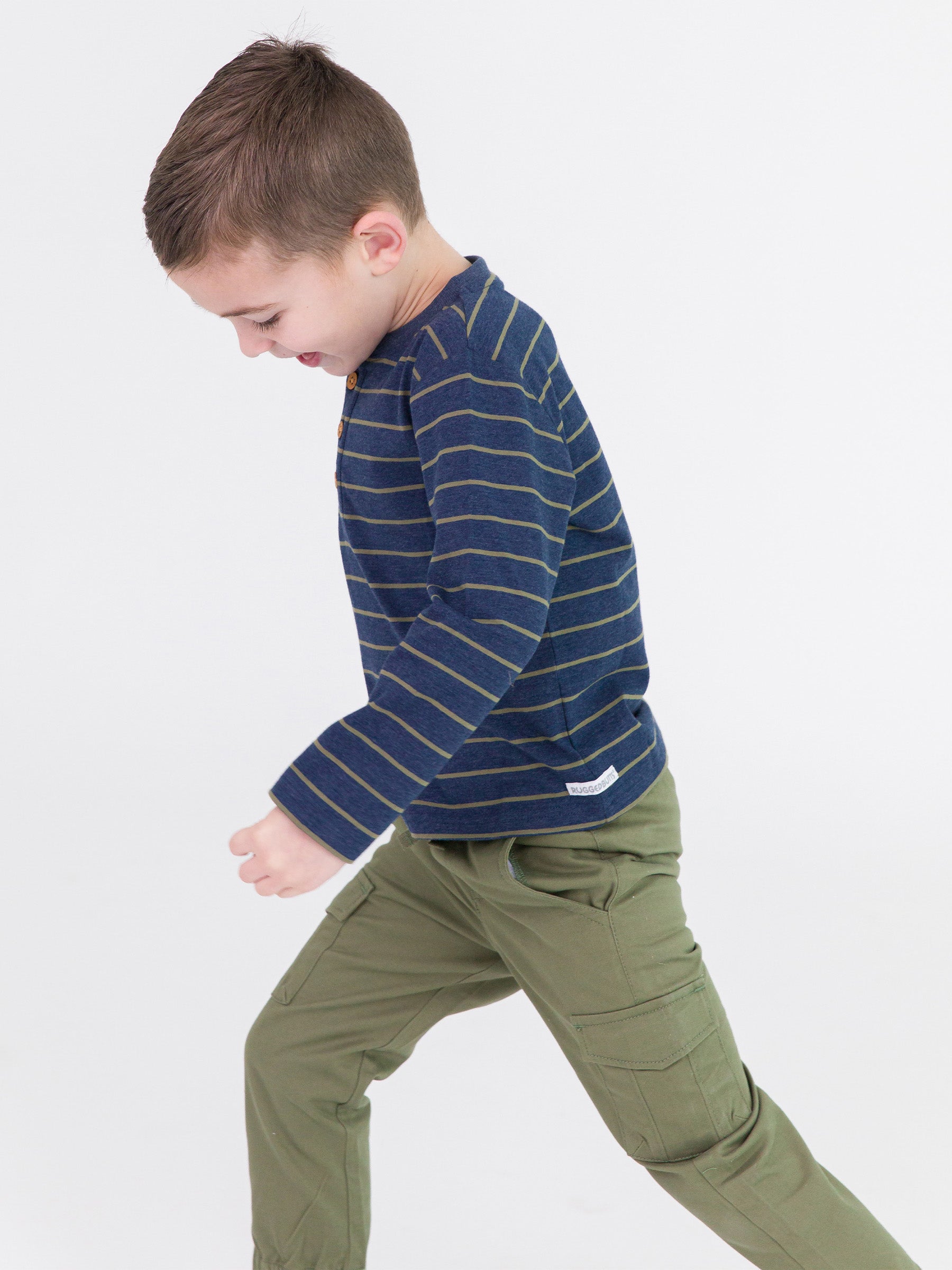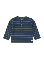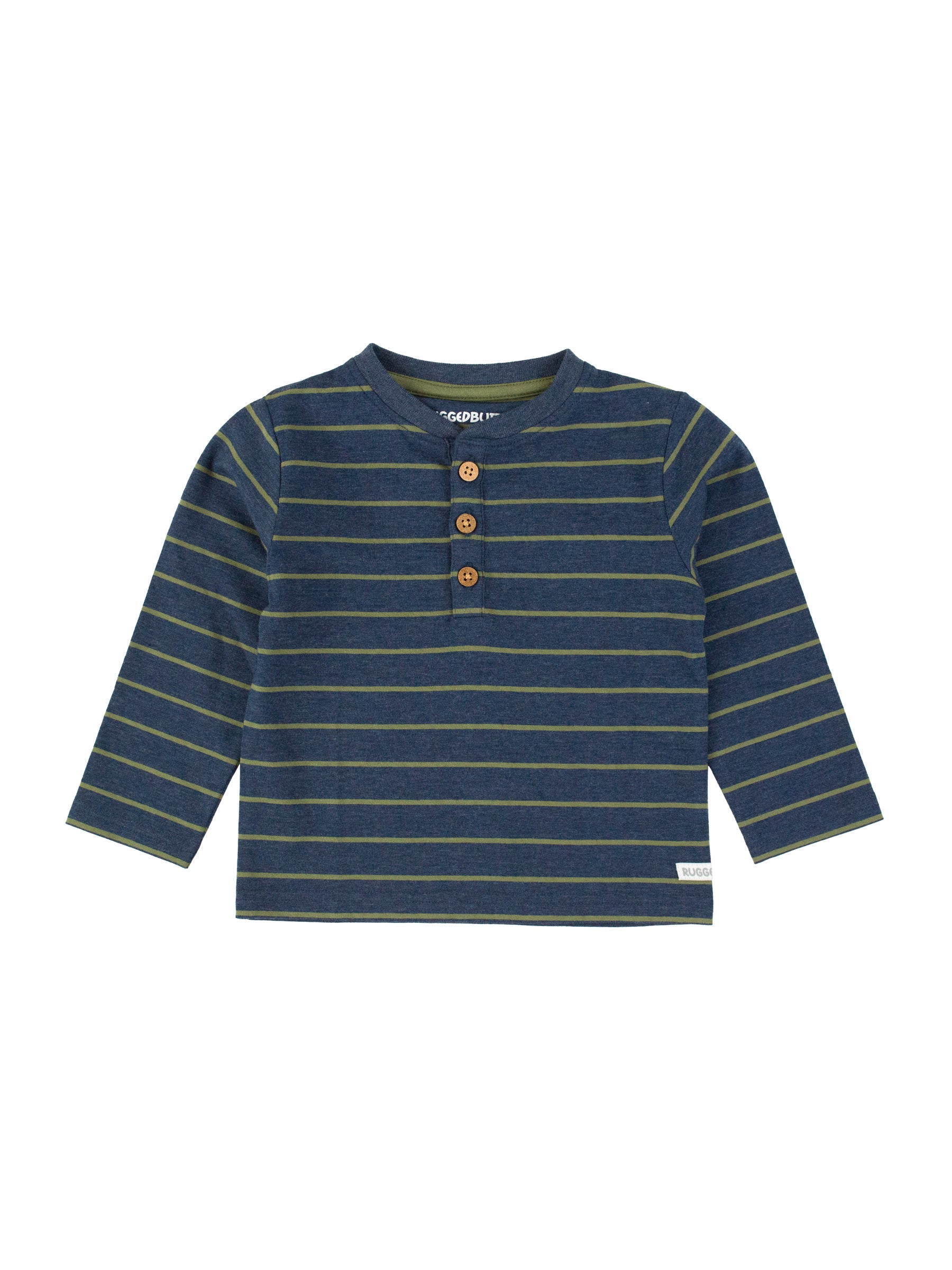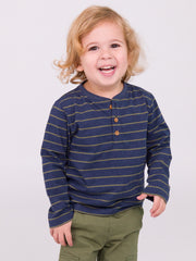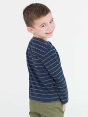 Heather Navy & Dusty Olive Stripe Knit Long Sleeve Henley Tee