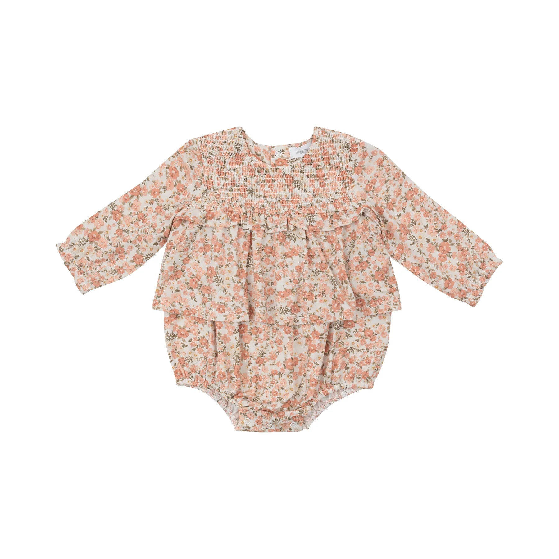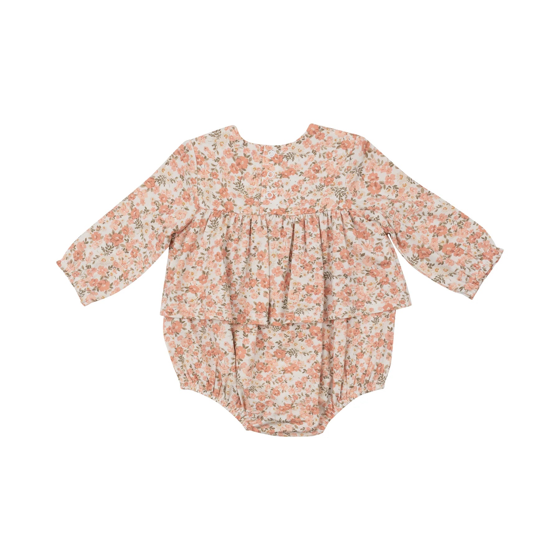 Long Sleeve Ruffle Skirted Bubble- Sweet Rose Calico