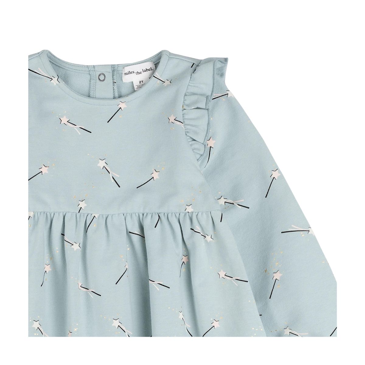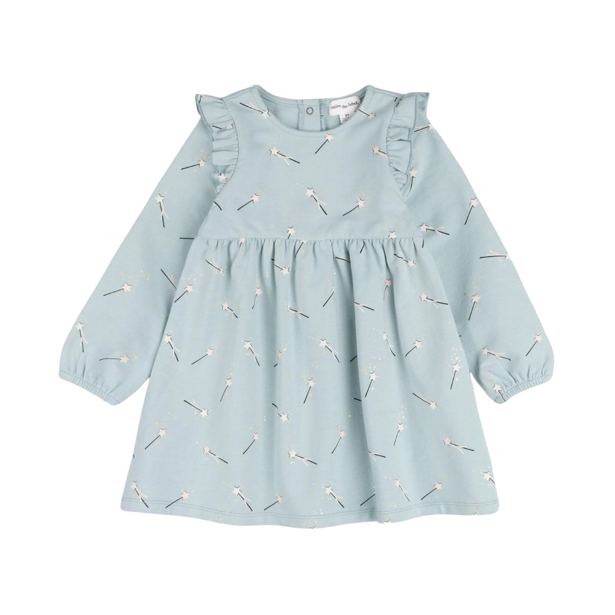Your littlest fairy will love this frilly dress featuring our all-over fairy wand print. Perfect for kids who love to play fantasy, the dress provides a comfortable and flexible fit so they can prance, dance and make wishes come true. Long sleeves with elastic at the hems to keep her warm during the chillier months. Paired with creme tights, she’s got the perfect outfit for heading out to town with mom. The dress is made from organically grown cotton French terry, and fitted with buttons at the back so they can be comfortable all through the day.