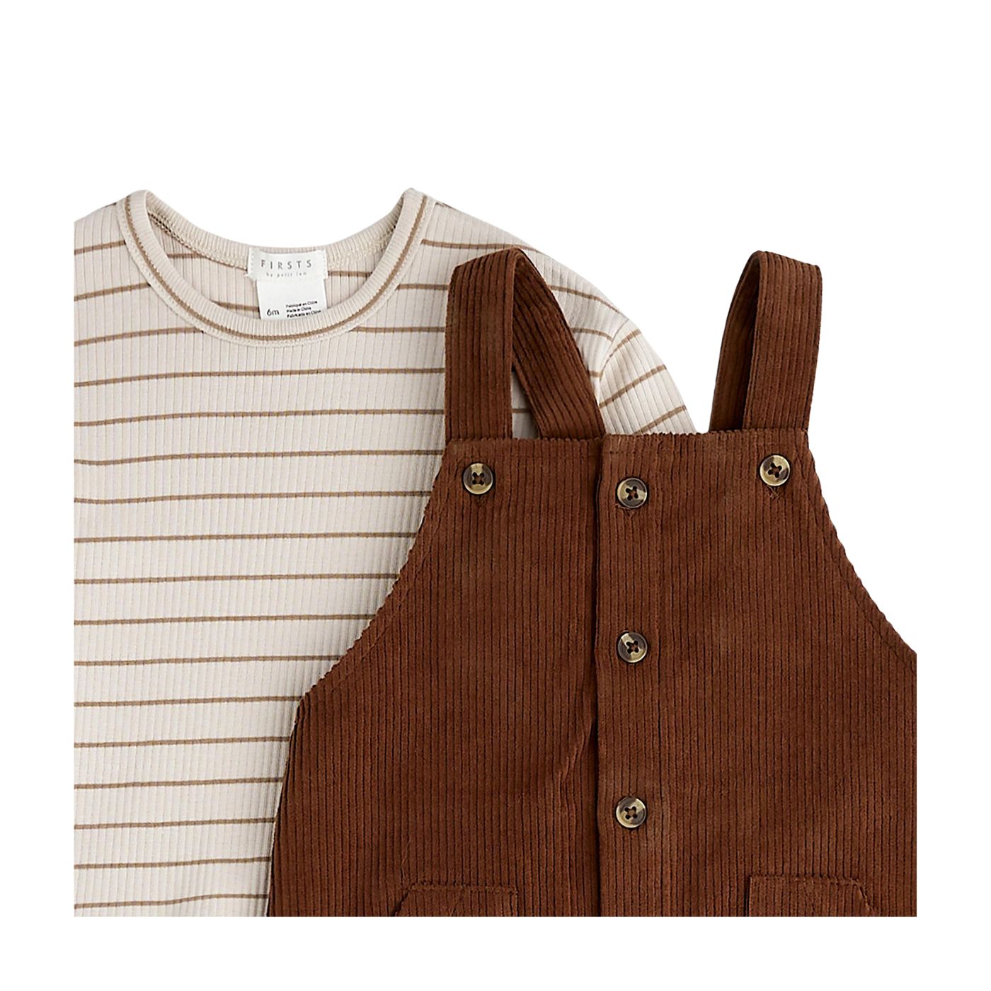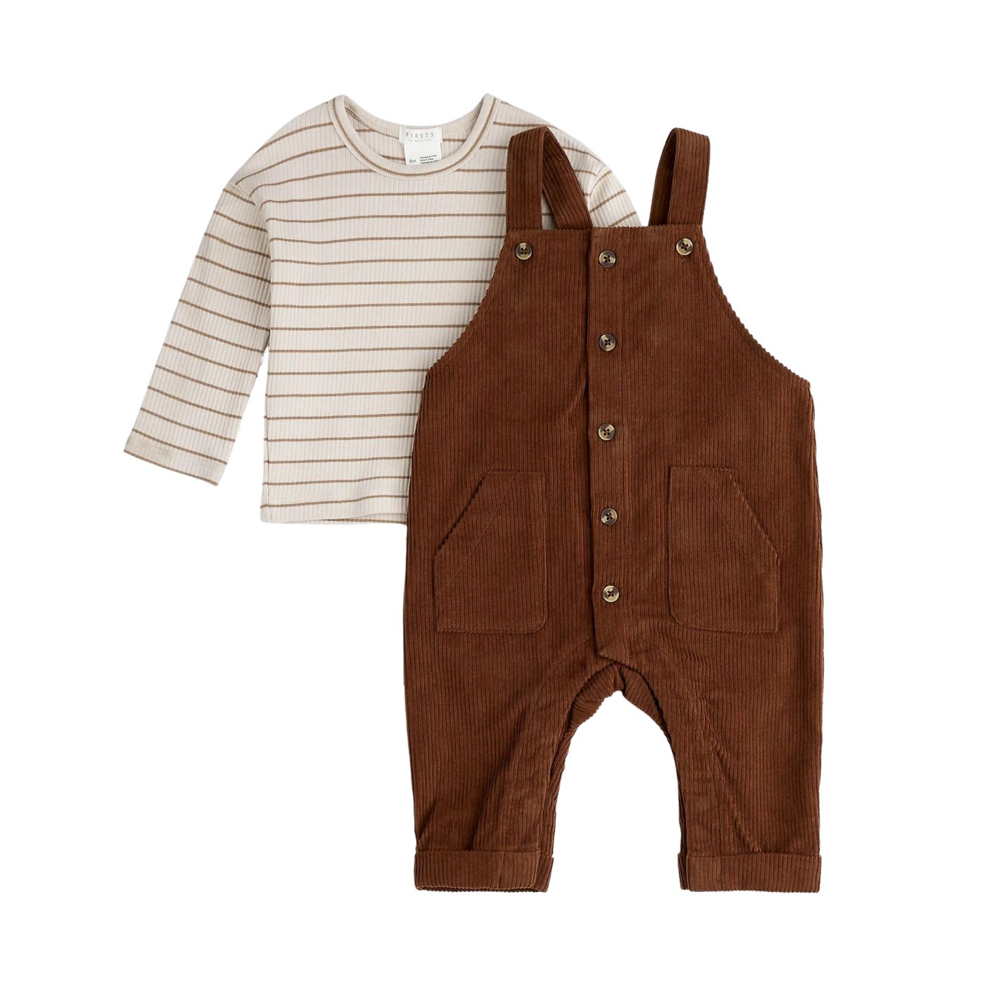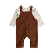 Escape to simpler days and slower living with this sweet 2-piece overall set. Featuring a striped shirt and corduroy overalls in autumnal hues, it's perfect for a day in the countryside. With buttons all the way down, the overalls make for easy dressing. The pockets can hold leaves, pinecones, and anything else they find on their adventures.