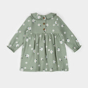 This 2-piece set has a timeless style and can be worn throughout the seasons. The long-sleeved dress features our pretty Daisy print and there’s navy leggings to layer underneath on chilly days. With a button placket at the back, the dress is easy to pull on and off and the crinkled collar adds a sweet vintage style.