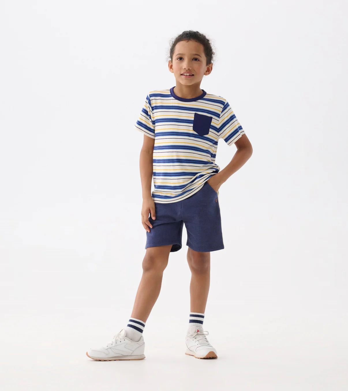 The Boys Patriot Blue Stripes Bamboo Tee combines classic style with everyday comfort! Made from breathable bamboo fabric, this tee features bold blue stripes that are perfect for school, playdates, or casual outings. Lightweight and stretchy, it’s designed to keep him comfortable all day long. A timeless addition to his wardrobe!