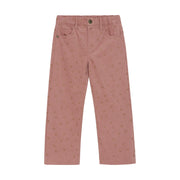 Minymo, Girl Pants All-Over Print, Color Dusty Rose, 100% cotton-woven, Comes In Sizes 18m-12y, Designed in Denmark. Care Instructions: Wash separately in warm water, Tumble dry low.