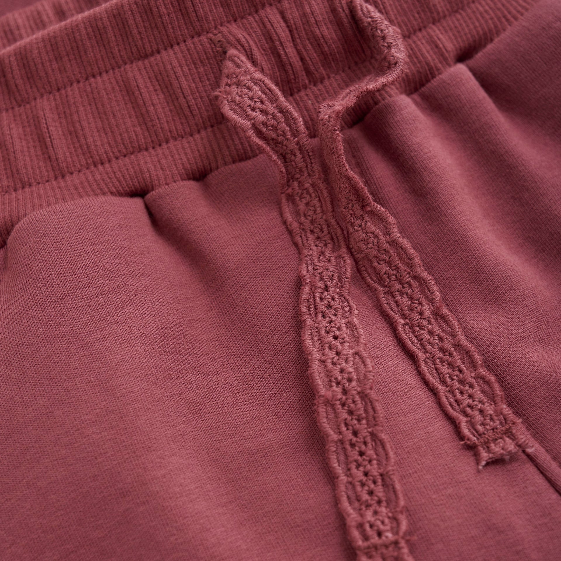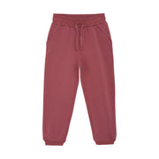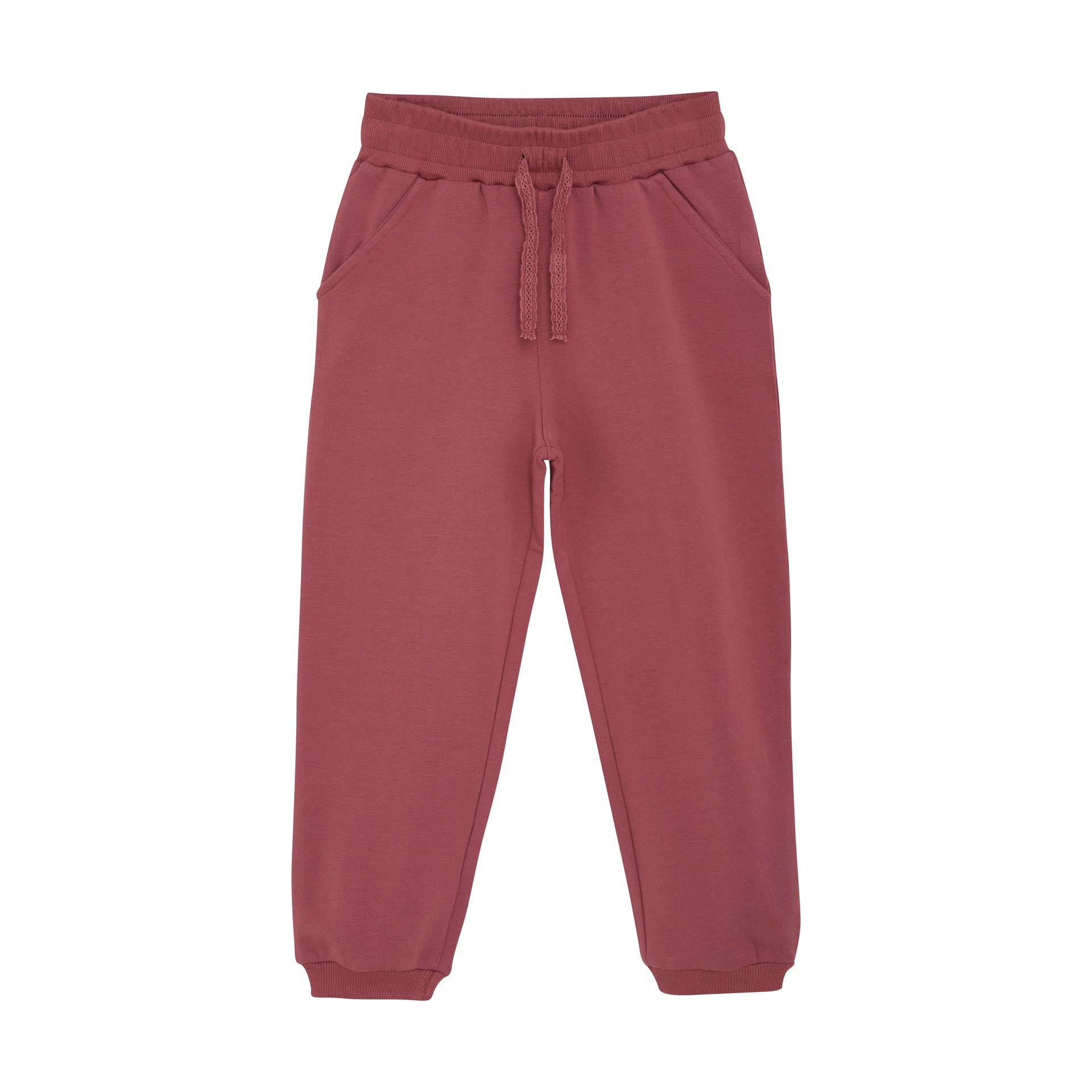 Mauve sweatpants with a drawstring and cuffs at the ankles. Style with the matching sweatshirt or dress it up with a collared white top.