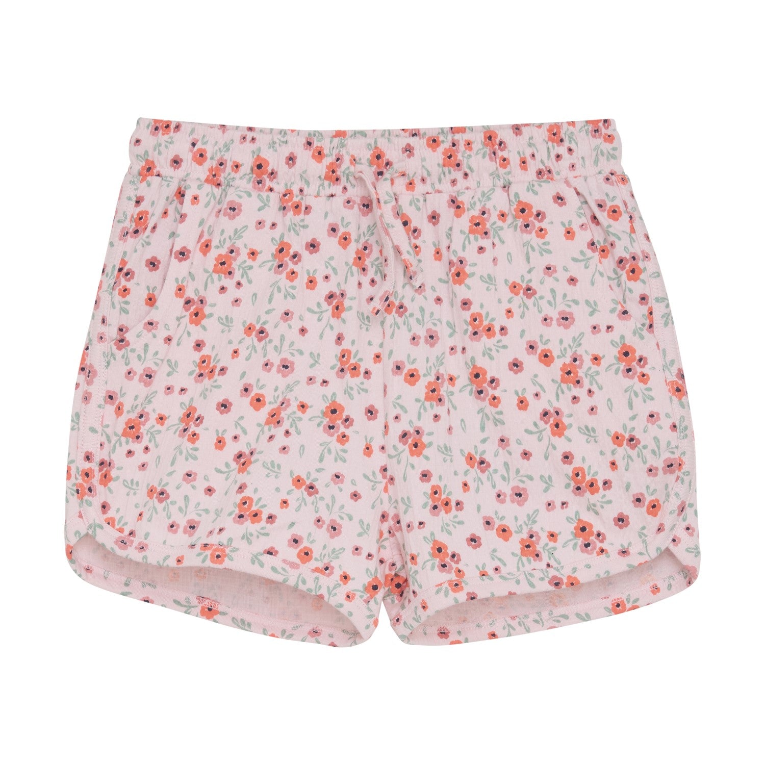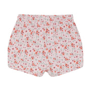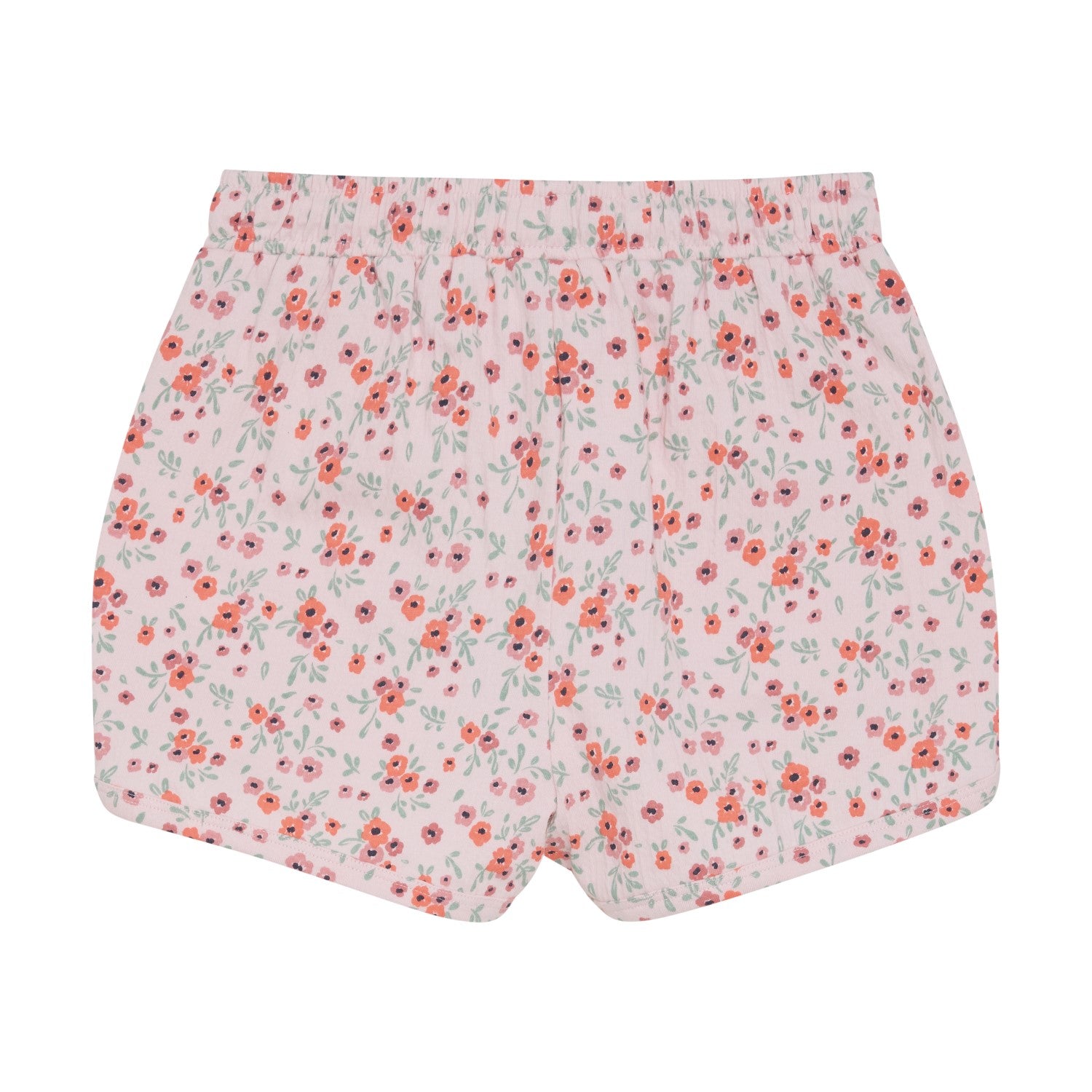 These shorts feature a beautiful blush background with fun corals and greens in a floral pattern. There is a functional drawstring to adjust the waist as needed.