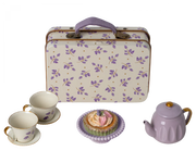 This tea set is the perfect size for a mouse paw. Each set includes all you need for a cozy moment with tea, cakes and tableware. It comes in a metal suitcase, lovely decorated with Maileg print.