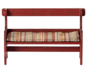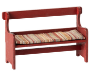 A wooden bench made to fit the mouse family perfectly. It has a beautiful hand painted vintage look - variations may occur - and a soft cushion on top of the bench for a comfortable seat.