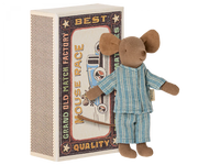 A classic Maileg item. This mouse is ready for hours of play and sleeps tight in the matchbox. The clothes and bed linen come in unique prints and beautiful colours.