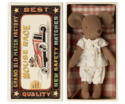 This mouse is ready for hours of play and sleeps tight in the little matchbox. The clothes and bedlinen are made of soft fabrics with unique prints in beautiful colors. Extend the story by adding accessories to the play!