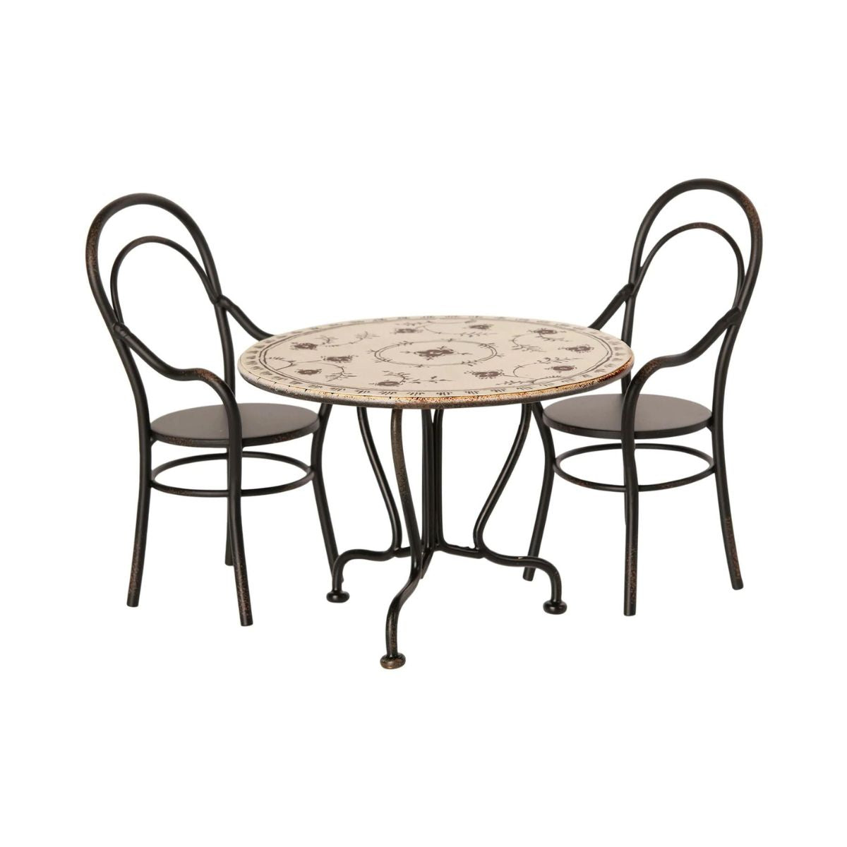 Invite your friends over for Sunday dinner at the dining table. This dining set contains a round table and 2 metal chairs. Fits Big Brother and Big Sister Mouse, Mum and Dad Mouse, King and Queen, Chef, and Nurse AND Mini Bunnies up to Size 1 Rabbits and Bunnies Size 1.
