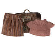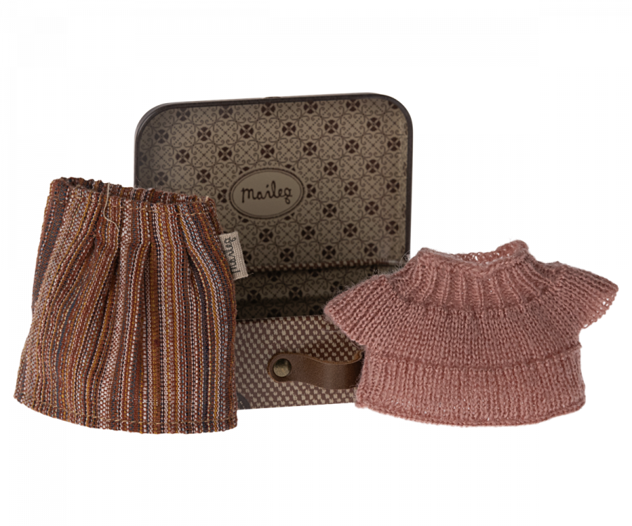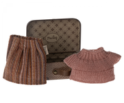 Knitted blouse and skirt in suitcase, Grandma mouse