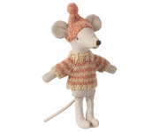 A soft knitted sweater and hat for the cold wintertime. It will for sure keep your little friends warm. The sets fits the mice in size Big sister/ Big brother