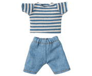 This mouse is called LouiMax and he is a really adventurous guy. He wears a blue striped shirt and a pair of denim pants. The mouse has magnets in his hands and is sold in a decoration box. The mouse is size big brother.