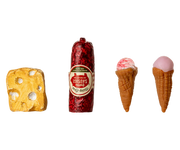 An old fashioned fridge that fits perfectly into the Maileg Mouse hole Farmhouse. Inside the metal fridge you will find a small cheese, sauage and some ice creams. These will extend the storytelling and play.