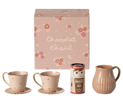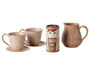 It is time to invite your friends over for hot chocolate. This set contains 2 cup, 2 plates, a pot and off course the chocolate. The sets is made in size mini and fits the Teddy family and the Bunny & Rabbits size 1 & 2.