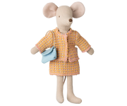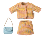If you need a new set of clothes for your mouse this set will be a good choice. The suit is a short jacket and skirt. In the box you will find a real lady bag as well.