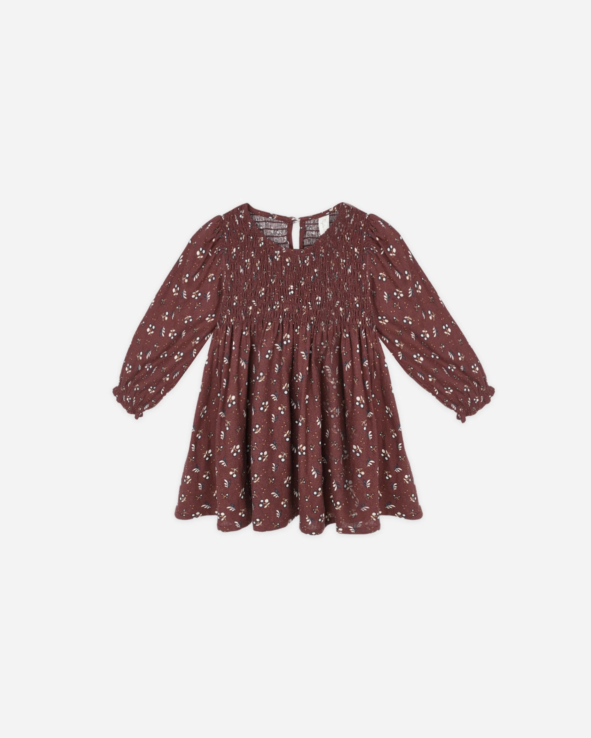 Our long sleeve Capri Dress features a darling smocked bodice and a flowy skirt. Coordinating bloomers included with sizes 0-3M - 18-24M.