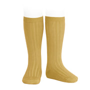 Ribben Cotton Knee Socks - Curry