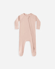 Full double-zip footie crafted from our soft and stretchy bamboo fabric. Fold-over hand mitts included on sizes NB – 3-6M. Raised screen print on soles of size 6-12M for added traction.