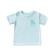 Features & Sizing *Crewneck, pullover styling *Short sleeves * Blue Print Materials & Care *Soft Feel *100% Cotton *50% polyester, 25% combed & ringspun cotton, and 25% rayon - Peach and Ice Blue *Machine wash cold, dry flat *Iron inside out