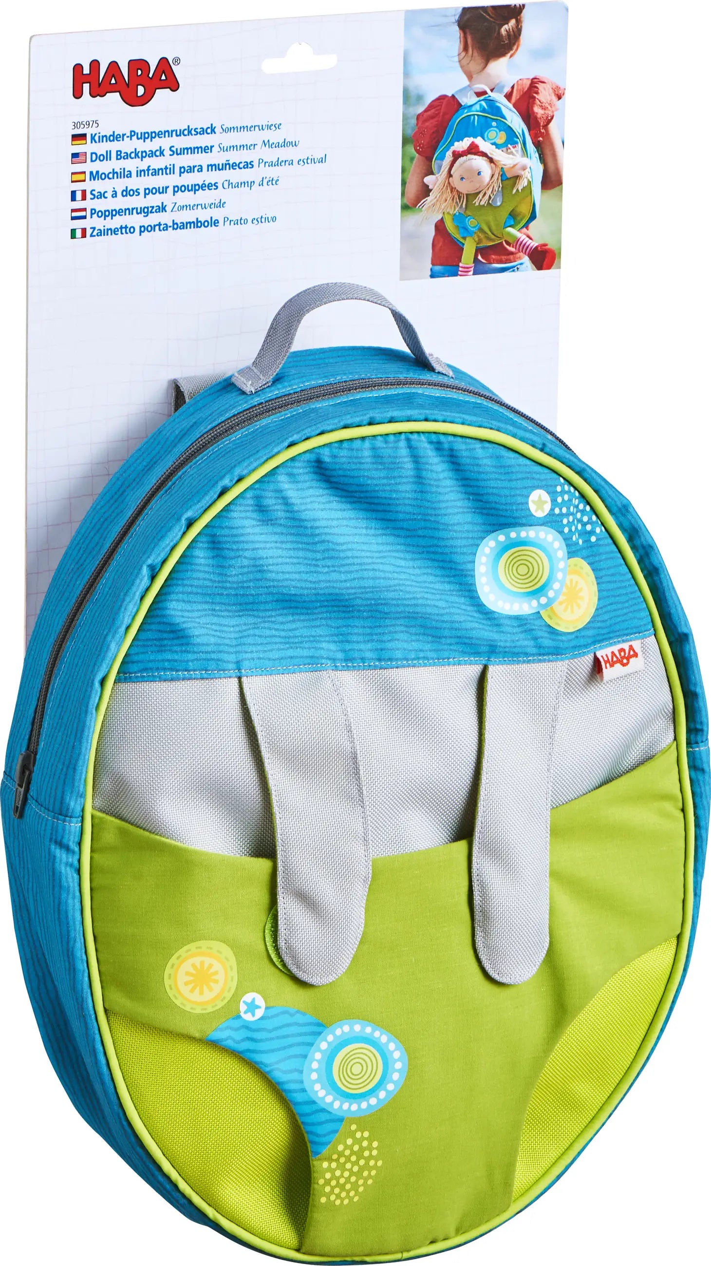 The Doll Backpack is a functional backpack for children with a twist. The outer pouch is designed to hold your favorite HABA Doll! The inside has plenty of storage for other toys, dolls, and clothes, or even schoolwork!