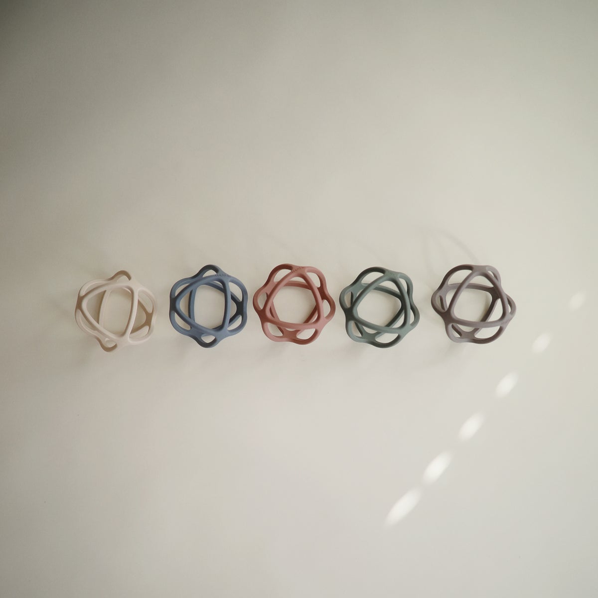 Help soothe your baby's irritated gums with our line of teethers. Made from 100% non-toxic, food-grade silicone, and designed to be easy to grasp by tiny fingers, our teether balls are safe for your baby to use. Their geometric design and sophisticated colors make them a stylish addition to your home.