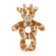 Keep little paws busy with the Bashful Giraffe Ring Rattle. With four squashy paws, adorable perky ears and soft horns, and a gentle rattle which delights at every shake. Crafted in the softest fur made from recycled fibers, our much loved Bashful character giraffe is both a toy and comforting companion, ready to soothe and entertain at any given moment!